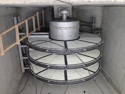 山西纤维转盘过滤器是由中心转鼓、转盘、反洗系统和配套控制电气系统等组成。转盘固定在中心转鼓周围,并与中心转鼓具有连通孔。河道里的污水由中心转鼓的一端开口流入转鼓内,并通过连通孔进入各转盘,转盘两侧装有过滤布,过滤布为不锈钢丝或聚酯丝编织而成,原水通过过滤布过滤后,清水流出过滤布,从过滤水出口排出系统外。随着过滤的进行,过滤布内侧的截留杂质不断增加,过滤压差随之增加,透过滤布的水量减小。当杂质堆积到一定程度,中心转鼓液位达到设定值,需要进行反洗,将过滤布内侧堆积的杂质反洗出。经过几道工序原来的污水就处理好可以排放了
